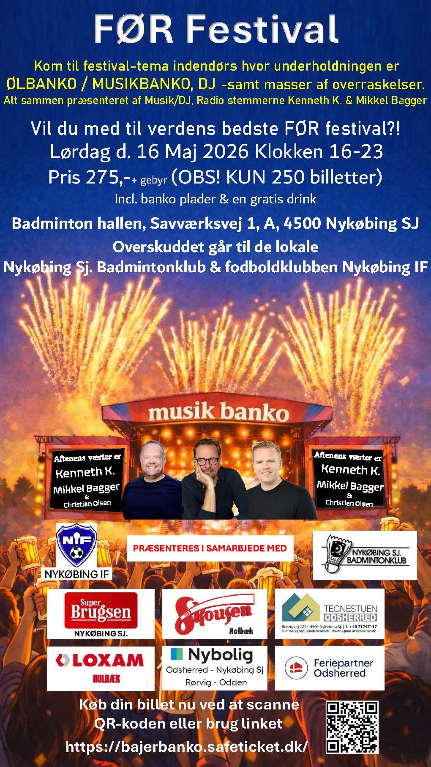 Klik her og køb billet : https://bajerbanko.safeticket.dk/114207/FOER_Festival_Nykoebing_Sj
